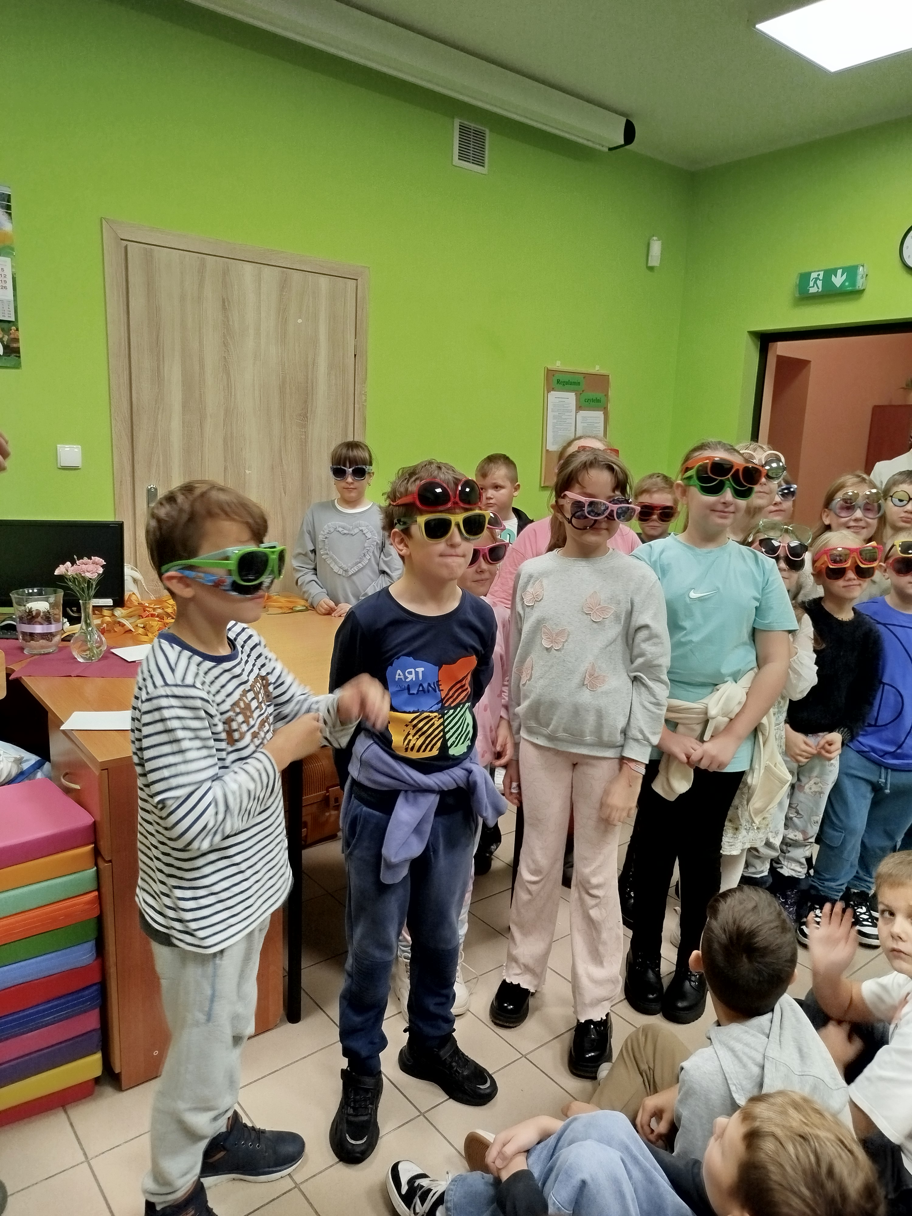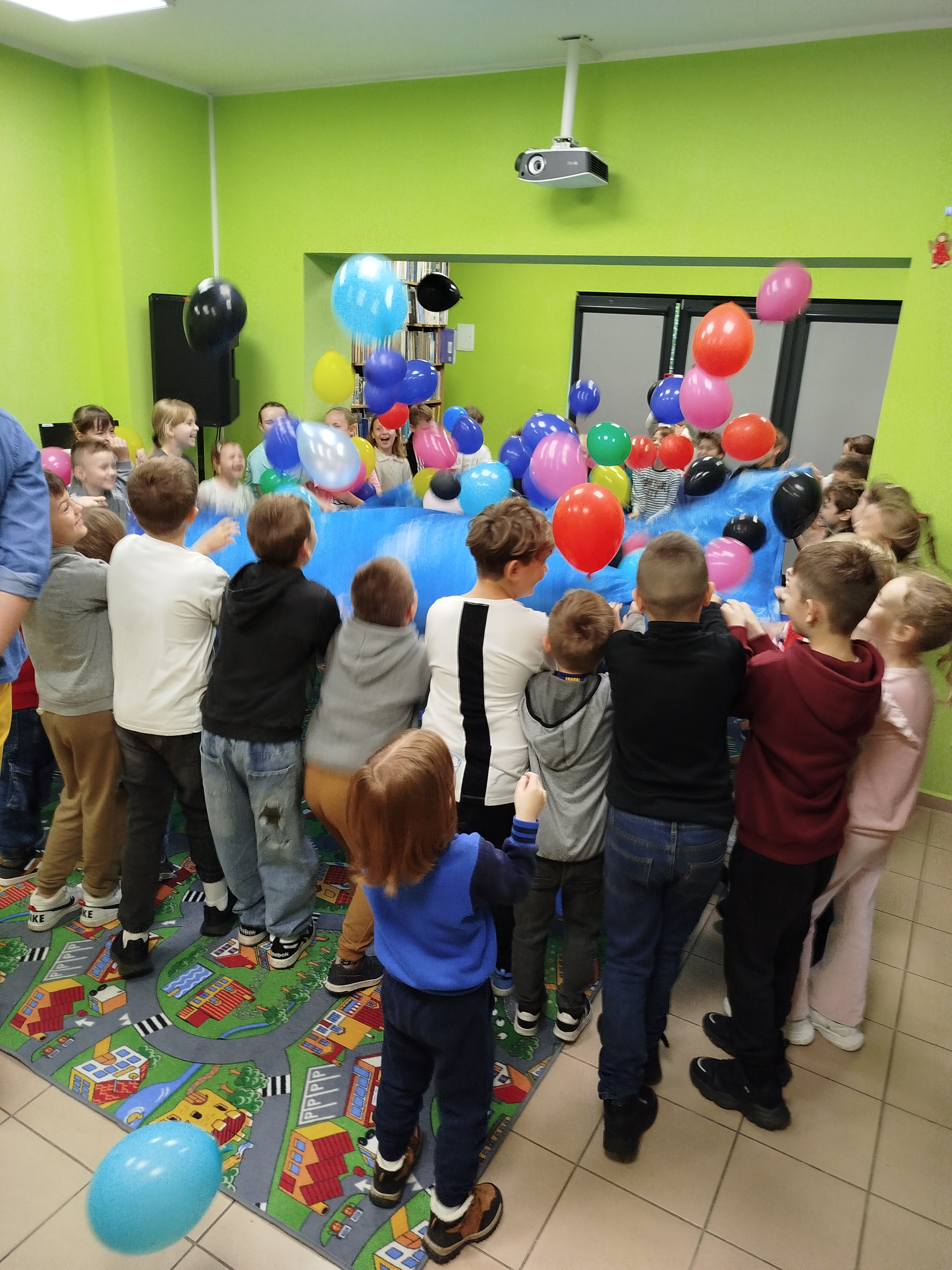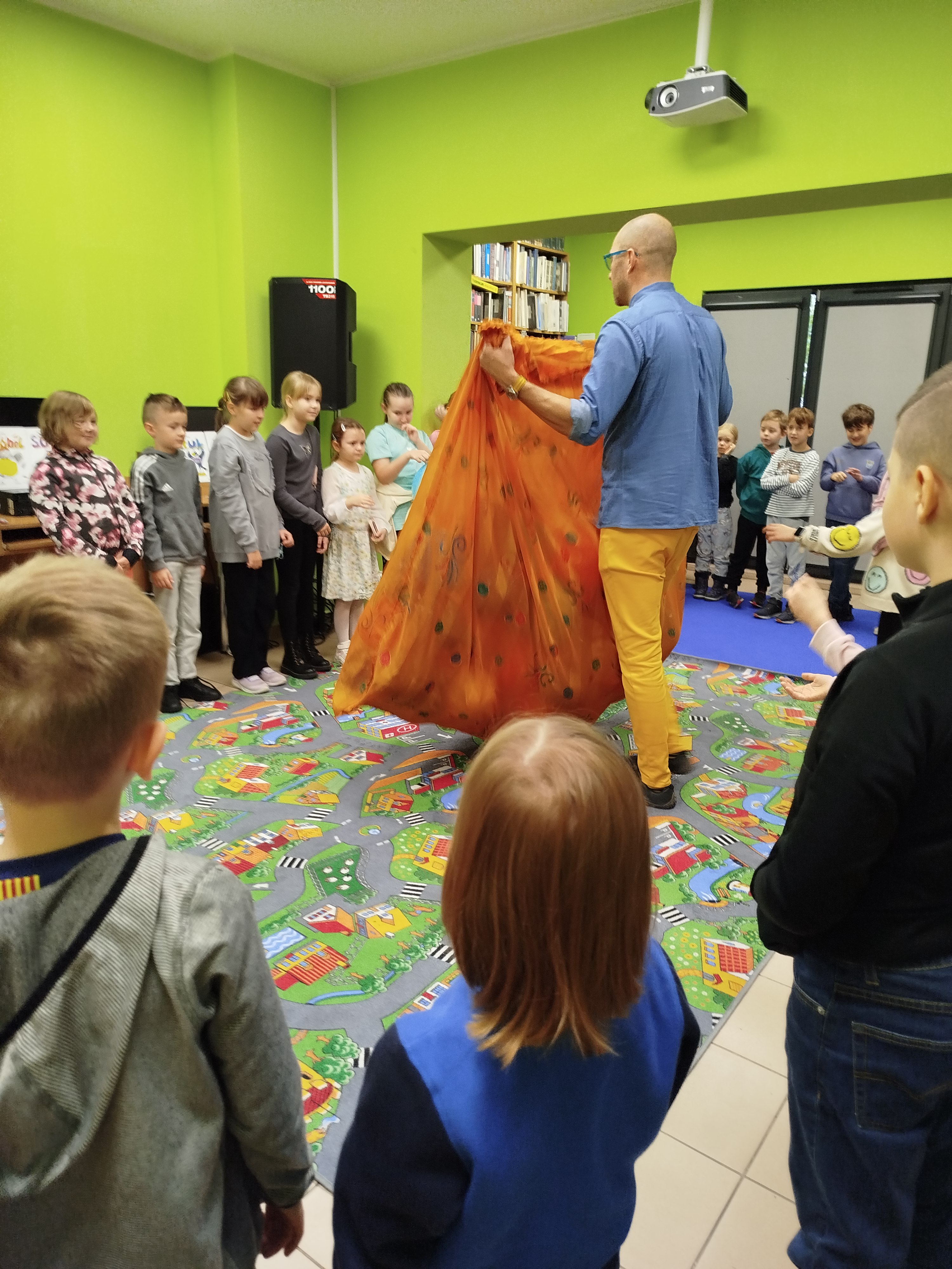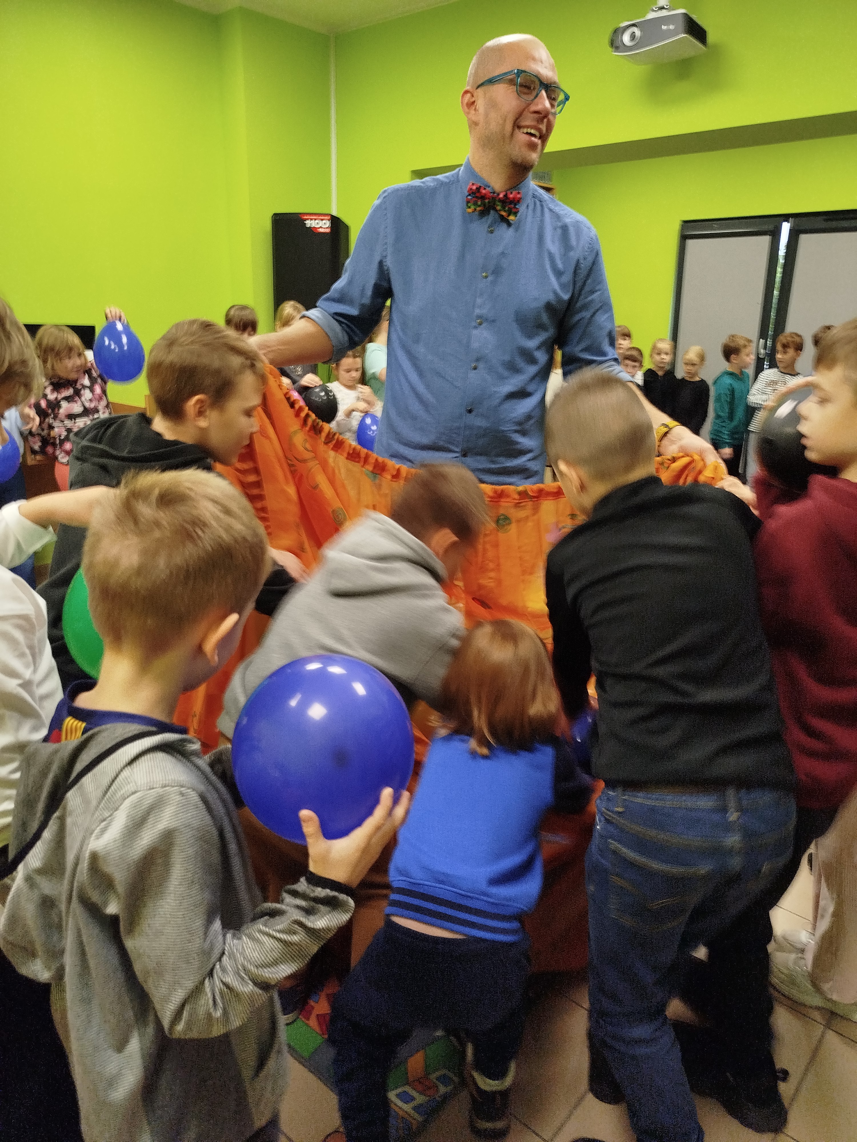 Gościem Biblioteki Głównej był Pan Poeta, który spotkał się z uczniami klas drugich ze Szkoły Podstawowej nr 10. Dzieci miały okazję poznać pięknie ilustrowane, kolorowe książki „Kura co tyła na diecie” i „Kaczka co przebrała miarkę”. Było przy tych rymach dużo śmiechu i fantastycznej zabawy. Dzięki rekwizytom przywiezionym przez Autora uczestnicy spotkania mogli m. in. nakarmić wielką kurę zdrowymi przekąskami, posłuchać szumu wzburzonego morza czy wyrzucić w niebo kometę. Dużą atrakcją była też sesja zdjęciowa w kolorowych okularach. Na zakończenie spotkania w zakupionych książkach Autor wpisywał imienne dedykacje.