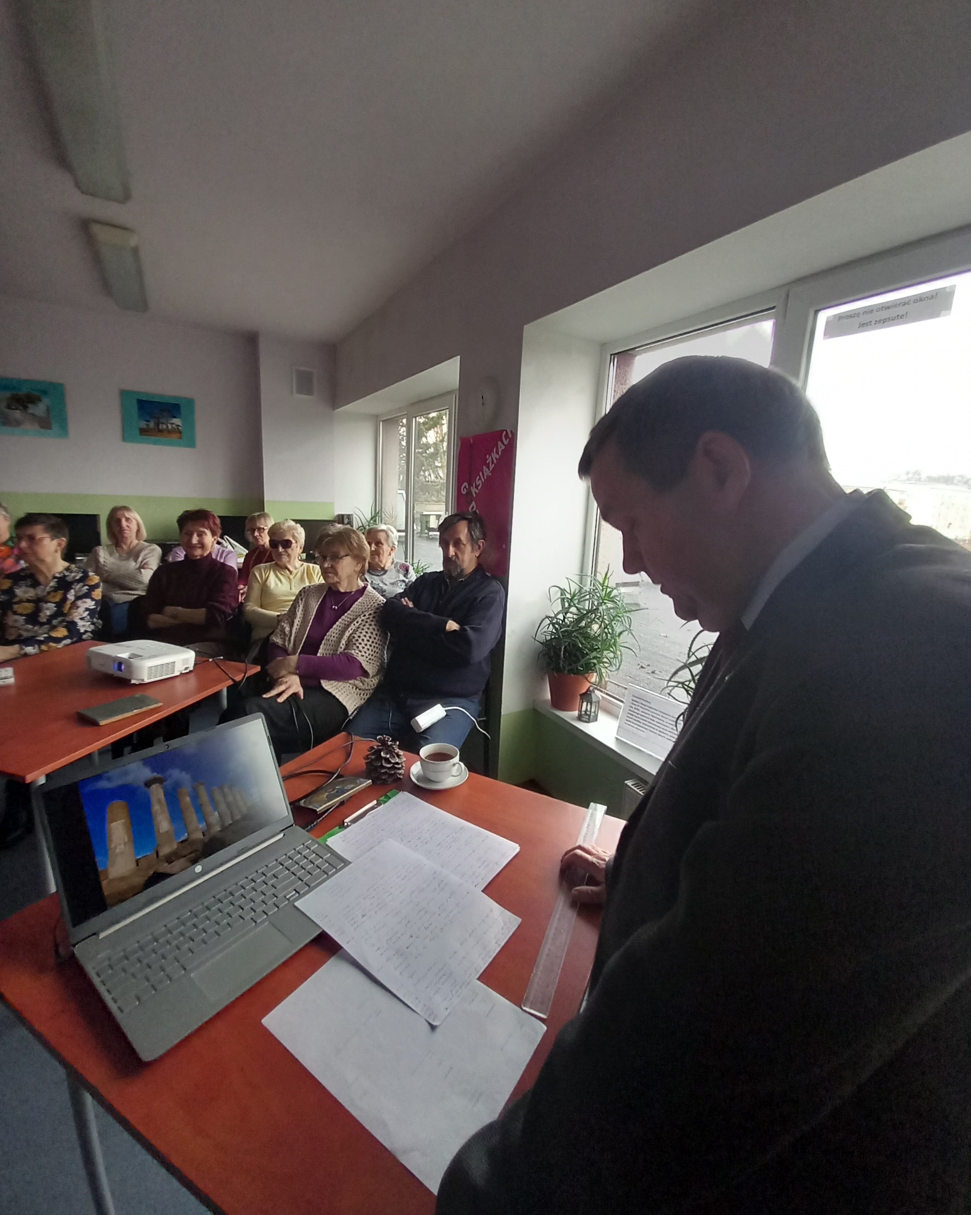 W dniu 15 stycznia 2026 r. w Filii nr 1 MBP w Sieradzu nie po raz pierwszy gościliśmy Krzysztofa Pietrycha, który opowiedział nam tym razem o Sycylii. Na wstępie prelegent po krótce nakreślił historię wyspy, przedstawił znane postaci, związane z Sycylią, oraz zapoznał uczestników z symbolami wyspy, tj.: trójnóg- triskelion, wóz sycylijski, głowa Maura czy szyszka. Potem o historii, zabytkach, kulturze tego miejsca. Mogliśmy posłuchać o Dolinie świątyń w Agrigento, o kolumnie w katedrze z cytatami arabskimi, czy teatrze marionetek, wpisanych na listę światowego dziedzictwa niematerialnego. Prelekcja poruszyła zaledwie czas panowania Greków i Arabów na wyspie. Na kontynuację tematu zapraszamy 29 stycznia 2026 r.