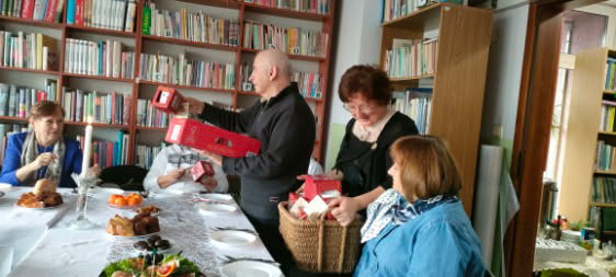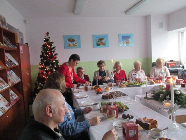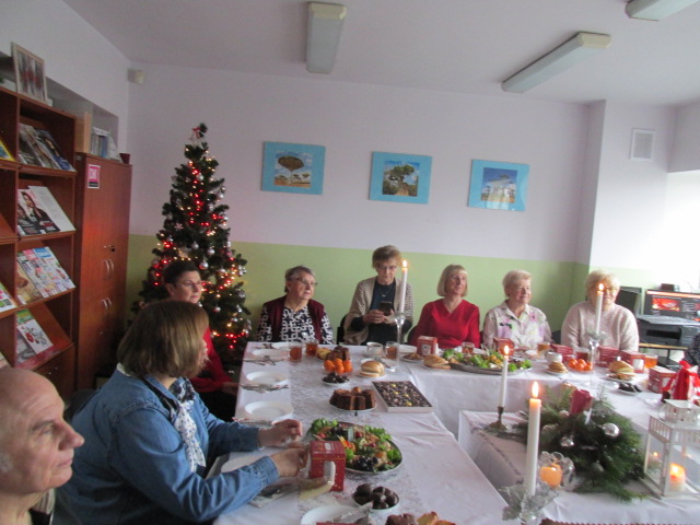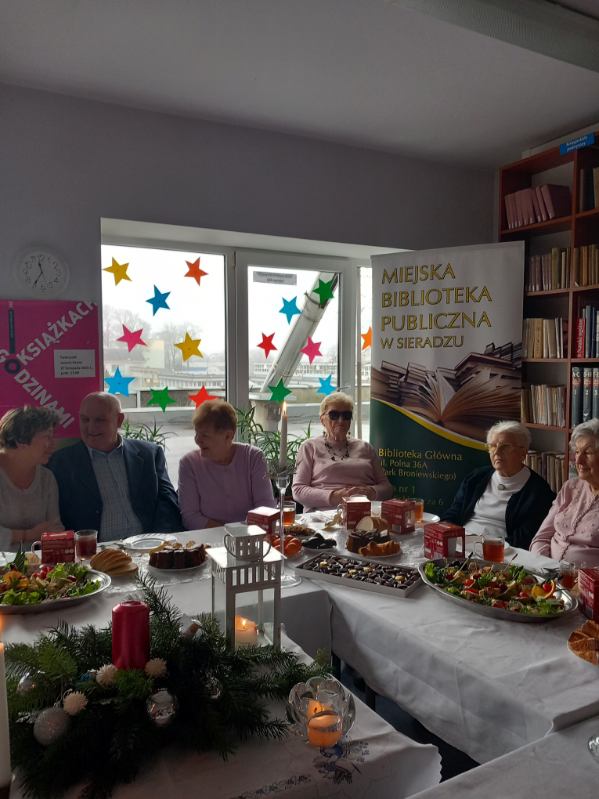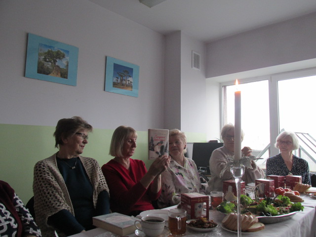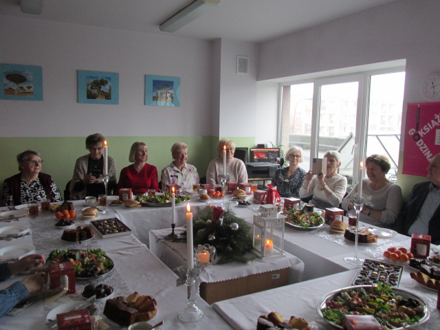 W dniu 4 grudnia 2025 r. Dyskusyjny Klub Książki spotkał się, by podzielić się wrażeniami z przeczytanych książek o tematyce Świąt Bożego Narodzenia. Wśród tytułów znalazły się m.in. takie jak: „Zostań moim aniołem”, „Świąteczny list”, „Rozmerdane święta”, Zasypani zakochani”, czy „Wioska małych cudów”, „Opowieść wigilijna”. Przy wigilijnym stole powieści te wprowadziły nas w klimat tych najpopularniejszych, rodzinnych świąt. Nie zabrakło też wzajemnych życzeń, i tych pisanych i tych składanych w tym wyjątkowym czasie.